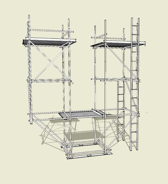 Double Scaffolding is generally used for stone masonry so, it is also called as mason’s scaffolding. In stone walls, it is hard to make holes in the wall to support putlogs. So, two rows of scaffolding is constructed to make it strong. The first row is 20 – 30 cm away from the wall and the other one is 1m away from the first row. Then putlogs are placed which are supported by the both frames. To make it more strong rakers and cross braces are provided. This is also called as independent scaffolding.